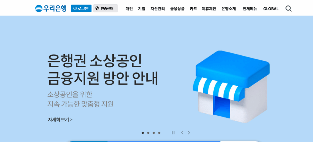 - 우리은행 인터넷뱅킹 홈페이지에 접속