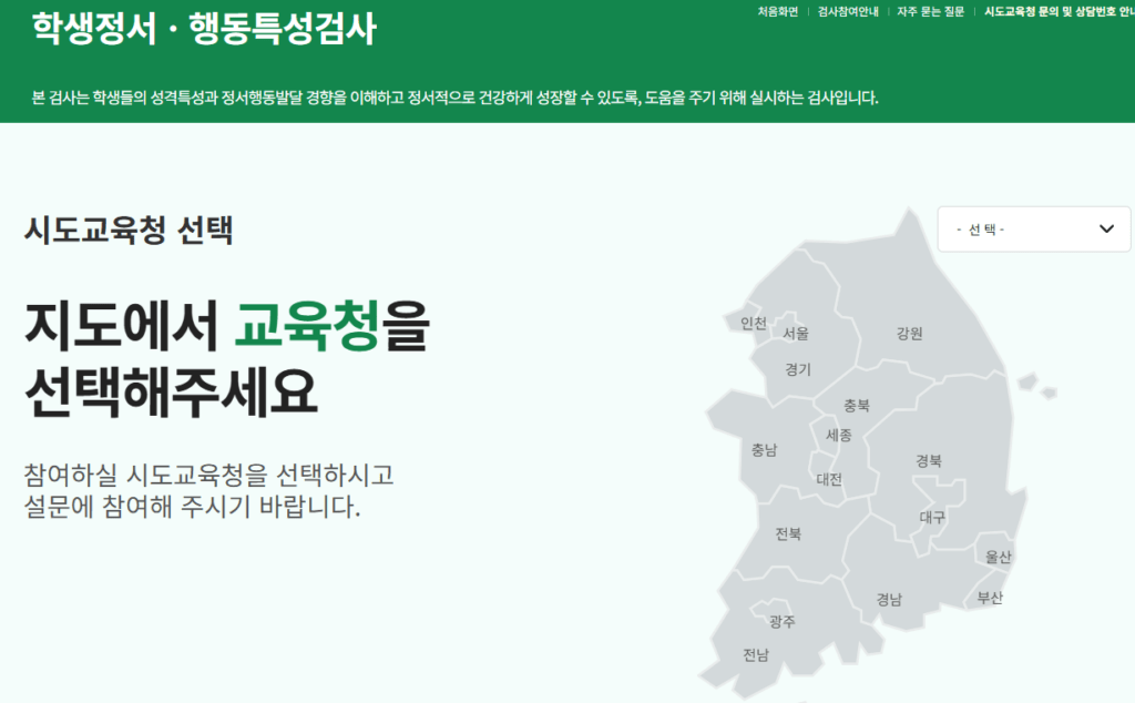 - 학생정서·행동특성검사 선택: 메인 화면에서 해당 항목 클릭