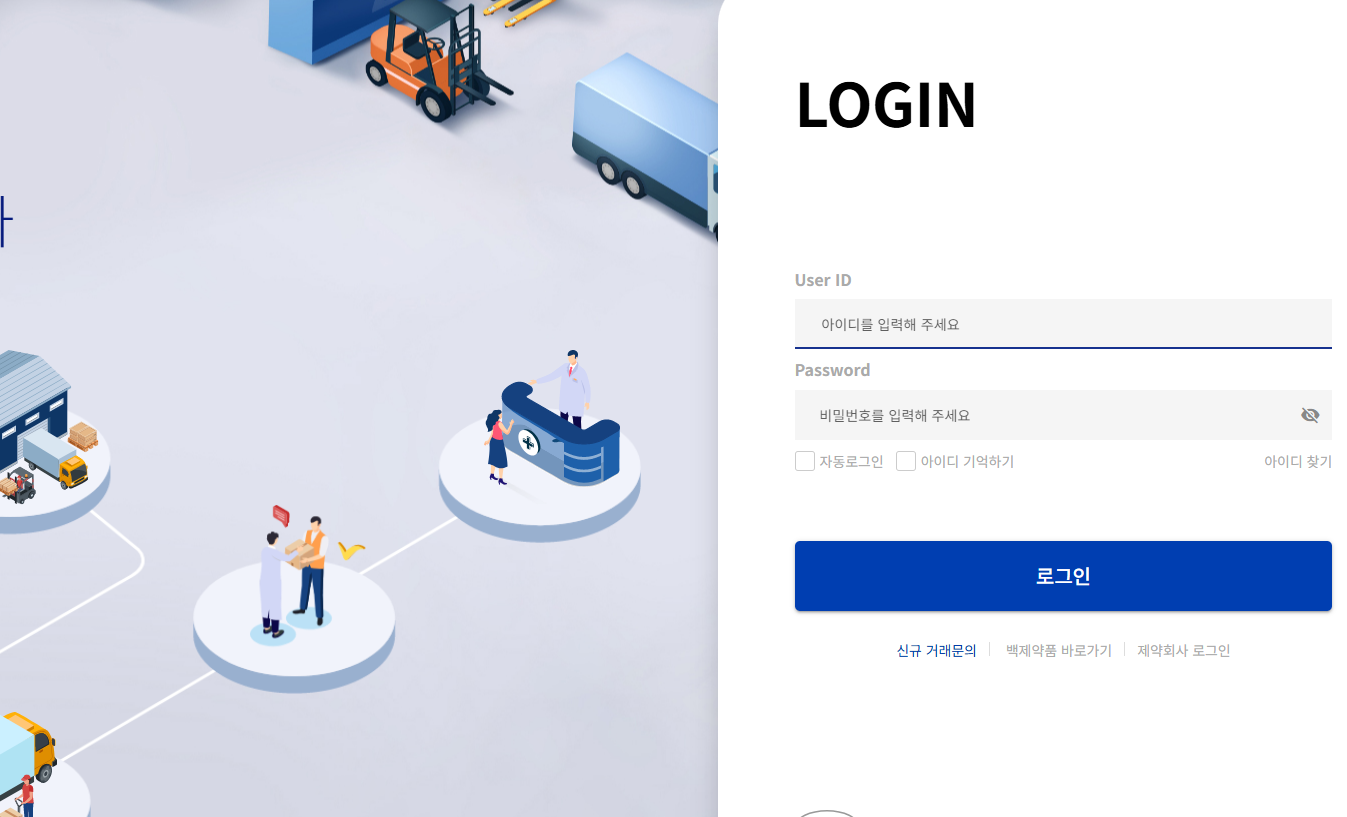 - 로그인 필수 – 사전 발급 받은 거래처 전용 ID/비밀번호 사용