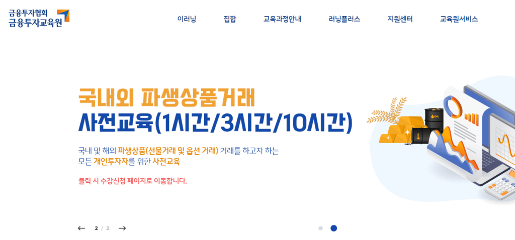 - 파생상품 사전교육: 1시간, 3시간, 10시간 등 단계별 구성으로 선물·옵션 거래 전 이수